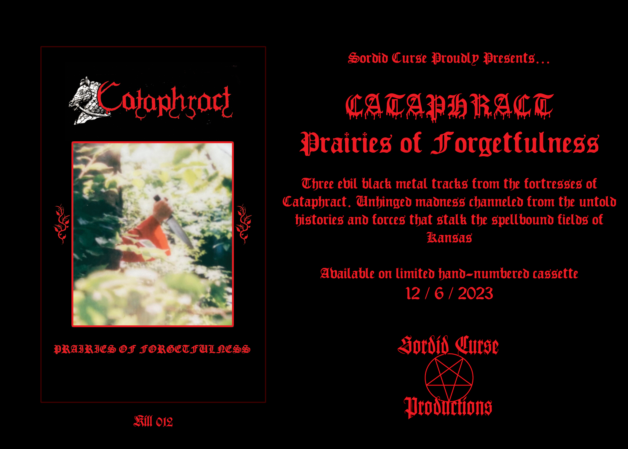 Three evil black metal tracks from the fortresses of Cataphract. Unhinged madness channeled from the untold histories and forces that stalk the spellbound fields of Kansas.